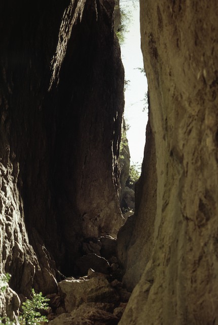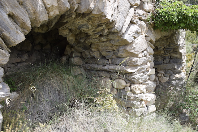 3,7 km: Esplanada al costat d’una gran roca que era el lloc on es dinava i es feia el ball el dia de l’aplec. Per sota d’aquesta roca hi ha la font, que degut al canvi climàtic, ara acostuma a estar sempre seca (foto 11 i 12)