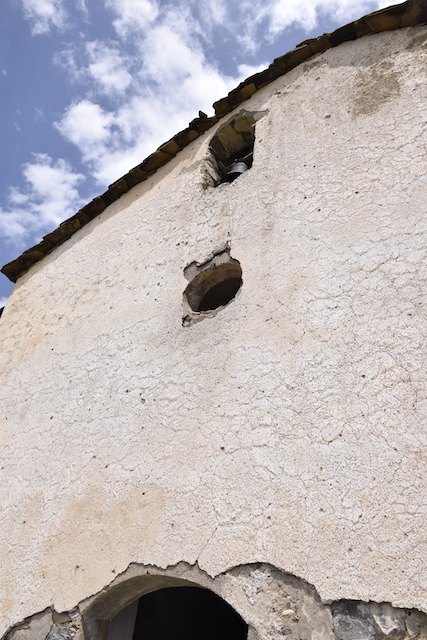 Tota l’ermita és de pedra a excepció de la façana sud que està arrebossada i pintada de color blanc, això fa que es pugui veure des de molt lluny i sigui un punt d’orientació de la Serra de Sant Gervàs (foto 3).