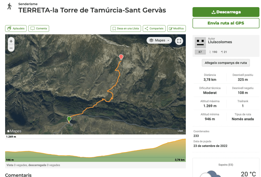 0,0 km: Sortim de la Torre de Tamúrcia i agafem la carretera en direcció a Espluga de Serra.