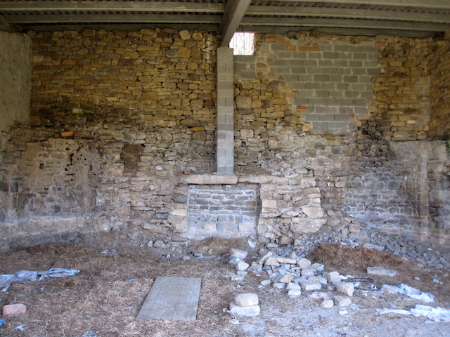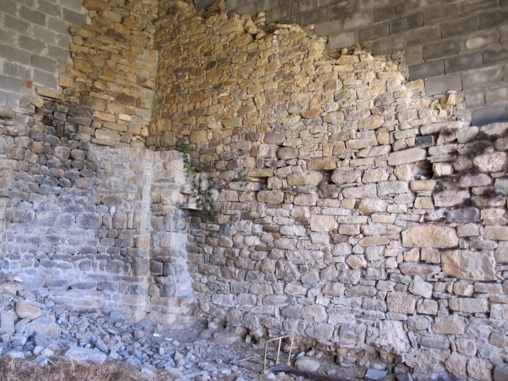 De les restes que es conserven es pot observar la capçalera amb els tres absis: el situat a l’esquerra, el central que és el més gran i està tapat parcialment per una paret on hi ha una pilastra que aguanta la teulada del l’actual paller (foto 1) i l’absis de la dreta que es perllonga amb una mica de mur original (foto 2 i 3). És possible que la pedra de l’ara estigui aprofitada com a basament de la pilastra (foto 4).