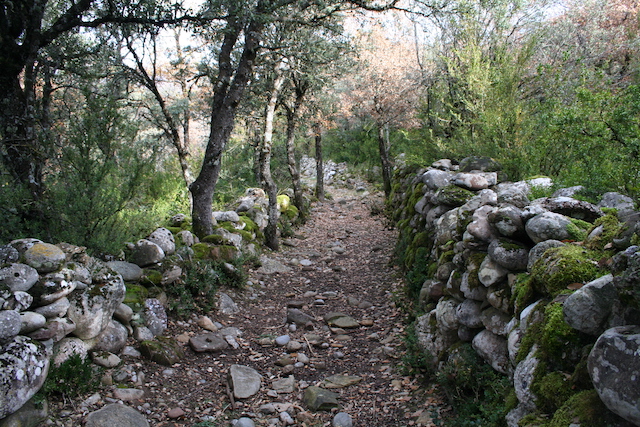 Des de la Carretera-pista que va des del Pont d’Orrit al Castellet i a Espluga de Serra, al Km 10,8 s’agafa l’antic camí que transcorre entre dues parets de pedres arrodonides de grans dimensions (foto 5) i en alguns trams encara s’hi pot veure l’empedrat original (foto 6). Al cap de 850 metres estarem al davant de Quadra del Mag-Sant Feliu. Cal recordar que actualment és una propietat privada (Foto 7).