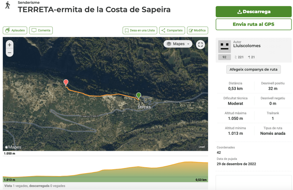 A la part oest del poble de Sapeira i al capdamunt d’un petit turonet situat a 1.054 metres d’alçada, es troben les restes d’una església-capella que es coneix amb el nom de l’ermita de la Costa (foto 1). Només se’n pot observar el perímetre de les parets (fotos 2 i 3) ja que està totalment enderrocada. Es tractaria d’una petita capella d’una sola nau capçada per un absis semicircular orientat a l’est (foto 4).