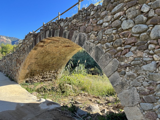 5,7 km: Pont vell (fotos 12 i 13). Està situat sobre el barranc de la Mussara i formava part de l’antic camí de Vilaplana a l’Aleixar. Fins el dia 22 de setembre de 1874, aquest barranc passava per sota d’aquest pont. La nit del 23 al 24 de setembre va ploure molt intensament a les comarques del Camp de Tarragona, de la Conca de Barberà, de l’Alt camp, del Priorat, de la Ribera d’Ebre, de l’Urgell i de les Garrigues, provocant el desbordament de rius,  de rierols i de torrents que va ocasionar la inundació de terrenys i de pobles, ocasionant la mort d’unes 570 persones i l’enderrocament de més de 700 cases. Després d’aquest aiguat, va variar el curs del barranc de la Mussara, que ara ja no passa per sota d’aquest pont (foto 14).