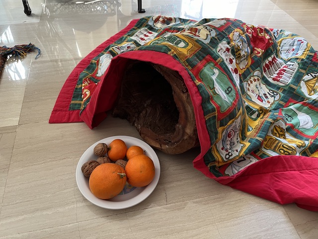 Casa Jumperna va emigrar a Reus als anys seixanta del segle passat, però vam mantenir totes les tradicions de la Terreta. La primera generació nascuda a Reus va fer cagar la Tronca la nit de Nadal. L’avi Àngel va fer un tronc foradat que tenia totes les funcions d’una bona Tronca (fotos 1 i 2). Als nens se’ls hi deia que la Tronca vivia durant tot l’any a la rourera d’Aulàs i que quan feia fred baixava a Reus. Arribava el mateix dia que fèiem el pessebre, ves quina causalitat !, però els nens s’ho creien. Aquí vam fusionar la Tronca amb el Tió, ja que se li dona menjar uns dies abans per tal que cagui molt (foto 3), cosa que no es feia a Sapeira.
