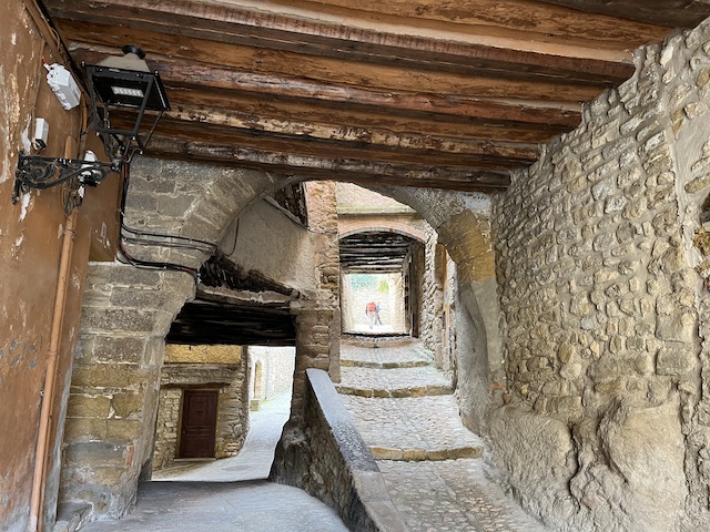 9,0 km: Àger. Pugem pel camí de la Font, portal de Pedró i entrem a la part medieval de la població (fotos 12 i 13). Sortim d’Àger pel raval de Sant Martí.