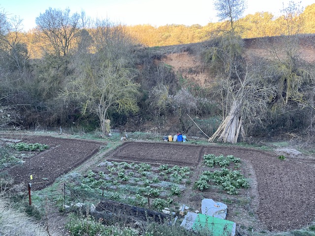 0:0 km Carrer Solsdevila. Prenem el camí que baixa en direcció sud per la riba  esquerra del riu Farfanya (foto 9), a la dreta es poden veure els horts del poble.