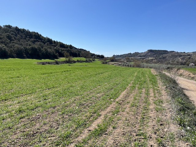 4,1 km: Retrobem la pista agrícola que havíem deixat i continuem en direcció sud-est. Al fons veiem el poble d’Os de Balaguer (foto 13).