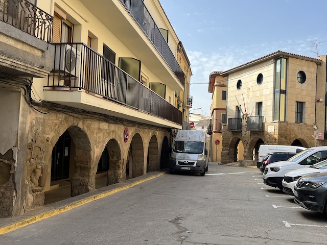0,5 km: Entrem a la Plaça Major, és la plaça porxada d’època medieval més gran de Catalunya, tots els arcs que formen part del porxo són de mig punt (foto 7). Ha estat sempre un lloc de venda dels productes conreats a l’horta de Balaguer i de tota mena de productes domèstics que la ciutat ha necessitat. Agafem el carrer del Barrinou i el continuem fins a la sortida de la població pel carrer de la Giradeta.