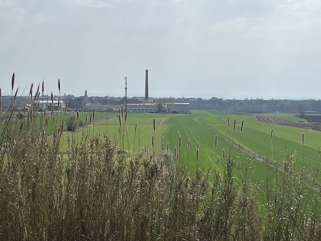 10,4 km: Carrer Major (foto 11) on podem observar l’església parroquial de Sant Vicent, d’estructura gòtica amb finestres ogivals i contraforts a l’exterior i els porxos de la plaça de l’església (fotos 12, 13 i 14). Sortim del poble per l’avinguda de la Creu. Continuem sempre en direcció oest seguin el track del Gr-3, comencem a trobar bancals amb arbres fruiters que estan en plena floració en aquesta època de l’any (foto 15). Al sud de Menàrguens es pot veure la xemeneia de la Sucrera del Segre. Es tracta d’un conjunt d’edificis noucentistes de tipus industrial que s’utilitzaven per fabricar sucre a partir de la remolatxa que es conreava a la Noguera i que es transportava fins a la fàbrica mitjançant el carrilet-Mollerussa-Balaguer (foto 16).