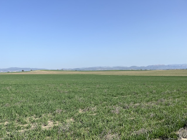 2,4 km: Travessem el pont de la C-12 i continuem pel camí de la Roca Pallissa en direcció oest enmig de grans extensions de camps de conreus de cereal (fotos 8 i 9)