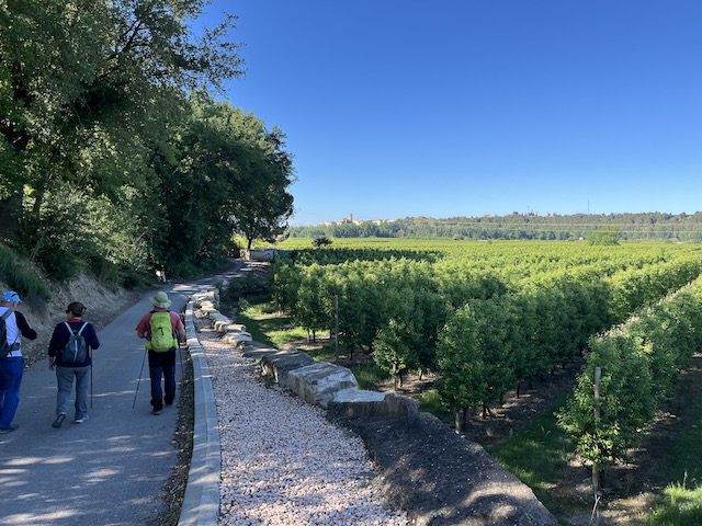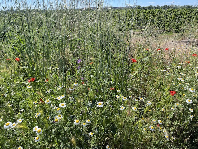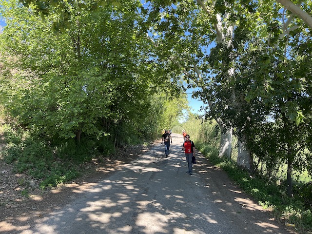 3,9 km: Agafem l’antiga carretera vella de Corbins a Lleida. Al fons ja s’albira la silueta de la Seu Vella de Lleida i el castell de la Suda i als costats del camí podem veure margarides silvestres, ababols i malves (foto 10).