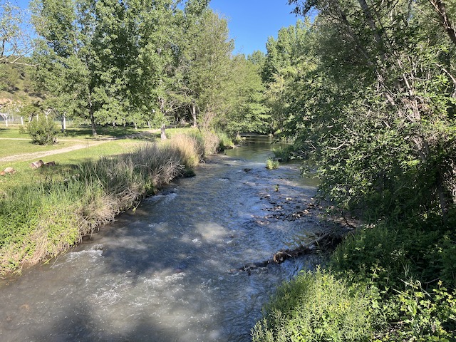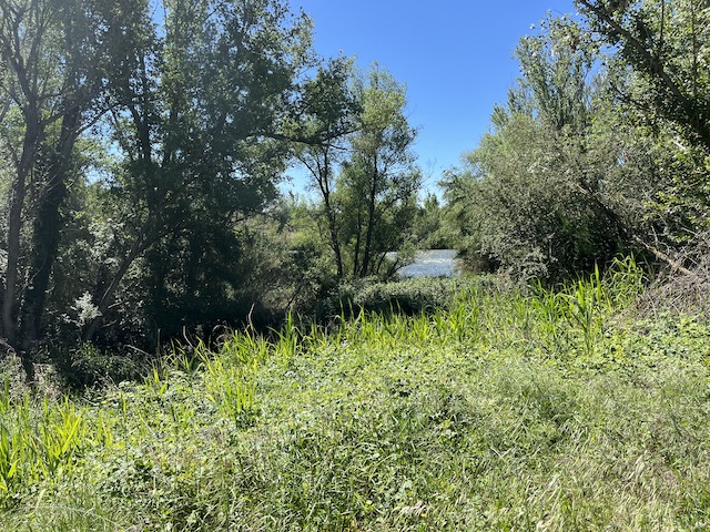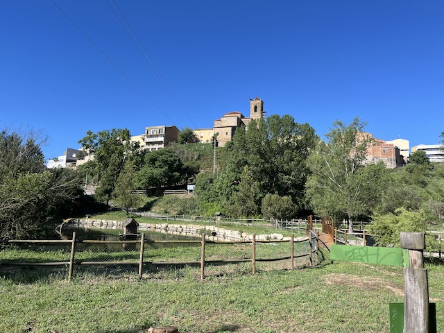 1,7 km: Travessem el riu Noguera Ribagorçana (foto 4) pel Parc del riu (foto 5), aquest forma part d’un espai protegit que constitueix la zona humida de l’aiguabarreig d’aquest riu amb el Segre. Està integrat per canyars i vegetació de ribera, que fa que sigui un recer per a aus que hi fan estada i un habitacle idoni per als moixons autòctons, per mamífers i per petits rèptils (foto 6).