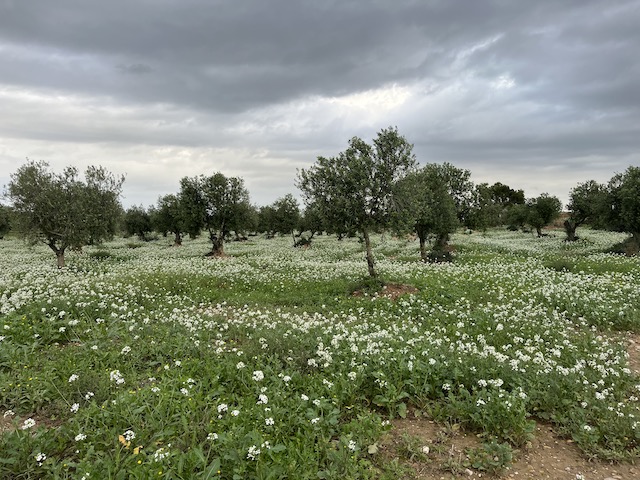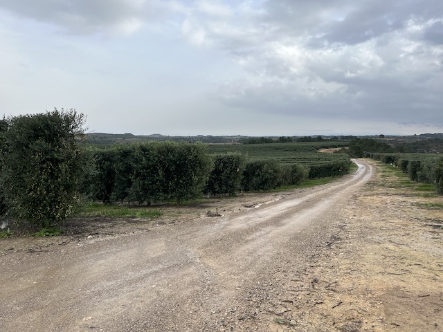 6,2 km: Travessem la carretera LV-2012 i agafem el camí dels Boixols, que al cap de 300 metres creua la via del tren per un pont. Continuem per aquesta carrerada en direcció sud seguint les marques vermelles i blanques del GR-3. Al llarg d’aquest tram podem veure grans extensions de plantacions d’oliveres per poder recol·lectar les olives de forma mecanitzada (foto 13).