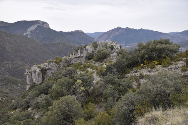 1,5 km Coll de Sant Roc de Viu, estem al punt més alt (1.148 m sobre el nivell del mar), hem fet 218 metres de desnivell positiu. Deixem la pista que arriba al cap de la Faiada i comencem la baixada per una carrerada agrícola que inicialment coincideix amb el camí del Trepadús (foto 7)