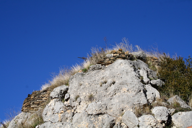 El castell es troba al mig del poble, damunt de la roca que està a 1.199 m d’altitud en una plataforma calcària molt irregular (fotos 1 i 2). Perimetralment, es poden veure restes dels murs del castell que segueixen l’orografia de la roca, encara que la major part de la muralla ha desaparegut i les seves pedres han servit per construir les cases del poble (fotos 3 i 4).