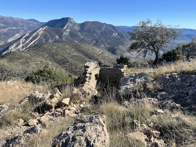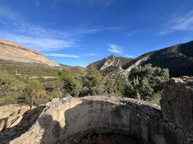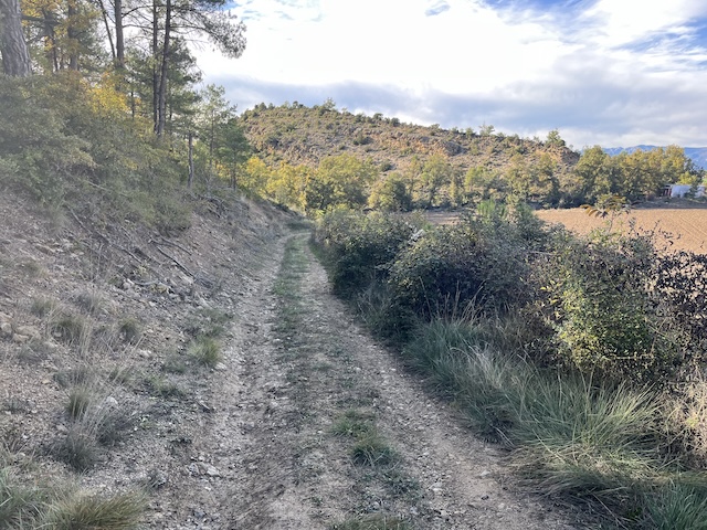 13 km: Cases de Vilanoveta (foto 14). Prenem la pista en direcció oest; davant nostre es veu la serreta on hi ha les trinxeres de Vilanoveta (foto 15).