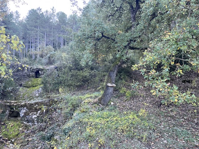 10,7 km: Collades de Baix. Deixem la pista i prement un camí que baixa en direcció nord, per després girar cap a l’oest seguint el curs del riu Carreu. El camí és pedregós i pot resultar una mica dificultós.