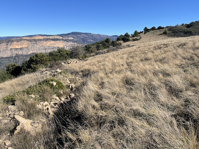 7,6 km: Pas del Llop. Aquí trobem les primeres trinxeres republicanes (foto 12) que continuen al llarg de quasi dos kilòmetres (foto 13).