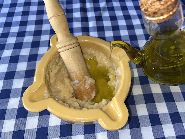 Com que l’oli era escàs, s’elaborava allioli, d’aquesta manera “s’allargava” i se’n podia menjar més quantitat i per més persones.