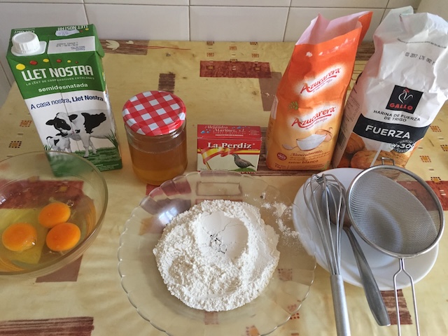 Batre tres ous. En un bol posar una cullerada de farina per cada ou, una culleradeta de sucre i el doble sobre de la Perdiz, i remenar-ho bé. Es posa en un colador per tal de tamisar-ho a mesura que ho anem incorporant a poc a poc als ous batuts i el rajolí de llet (reservar una mica d’aquesta farina per si cal espessir més la pasta). També s’hi posa un raget d’anís al gust.