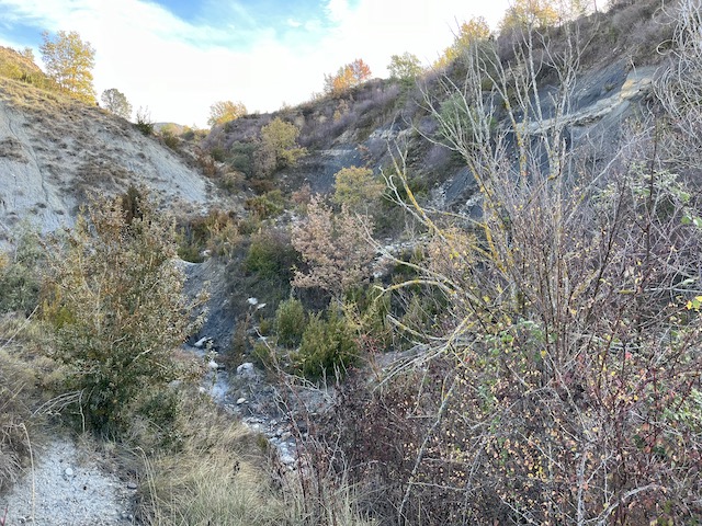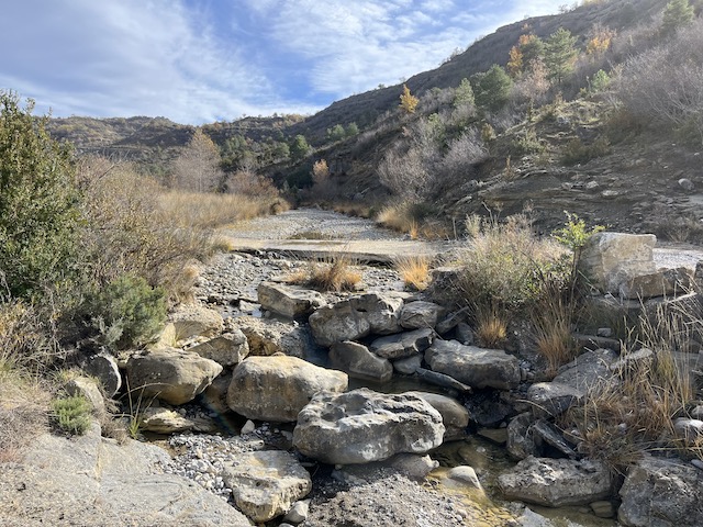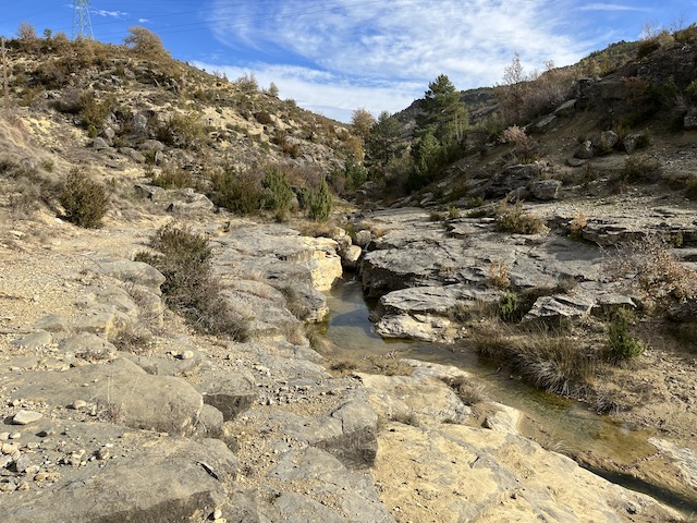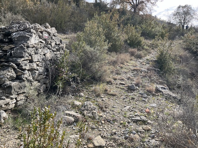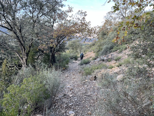 12,4 km. S’acaba el camí excavat a la roca i continua un senderó que va guanyant alçada.