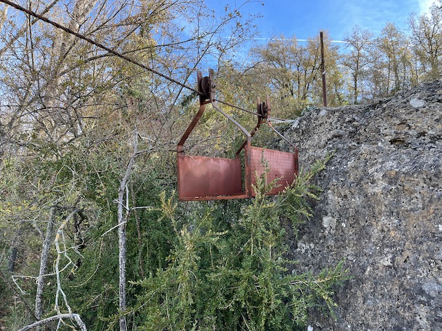 10 km: Pont penjant que va bastir l’ENHER als any 70 del segle passat quan va construir el camí superior (foto 12) en substitució del que va fer la Mancomunitat de Catalunya l’any 1924. Comença el tram de 1,2 km més espectacular del congost de Mont-rebei. El camí està excavat a la roca, té una amplada d’aproximadament un metre (fotos 13, 14 i 15) i en alguns trams hi ha una línia de vida per millorar la seguretat del tram.