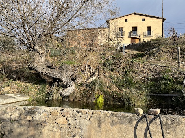 3,4 km: A la dreta es pot veure el mas de l’Agustina (foto 4) i a l’esquerra hi ha l’accés a la central hidroelèctrica del Pont de Montanyana que produeix electricitat amb l’aigua que surt de Sopeira i durant 23,5 km traspassa tota la Terreta.