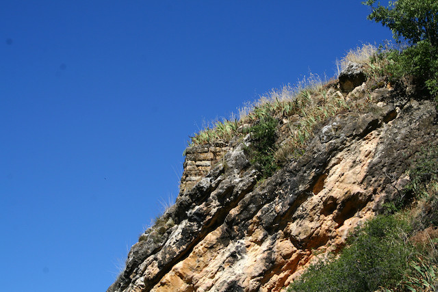 3.4 km: En aquest punt s’ha de deixar el vehicle i continuar a peu per l’antic camí que porta a Espills i que surt en direcció oest. En aquest punt es poden contemplar les impressionants vistes del cingle de la Cova Negra (foto 8). S’inicia el descens per l’únic pas que passa pels peus del cingle de la Serreta del Mig. El camí encara conserva els esgraons i l’empedrat que el feien més transitable (foto 9).
