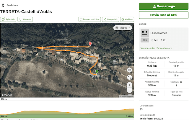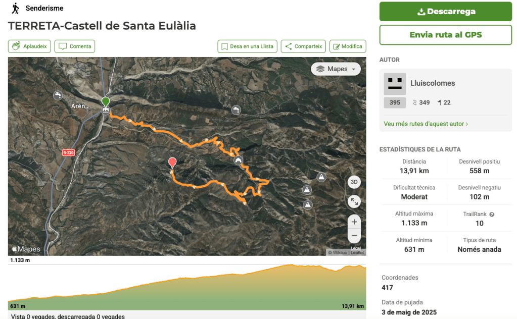 0,0 km: El Castellet, agafem la pista en direcció sud-est que porta a Sapeira i al Pont d’Orrit.