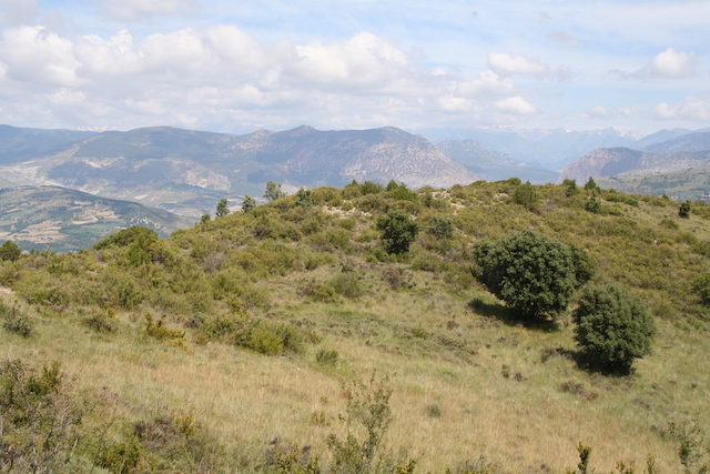 1,8 km: La pista agrícola acaba aquí, si s’ha pujat en vehicle tot terreny cal deixar-lo en aquest indret. Es continua en direcció est sense cap camí definit.