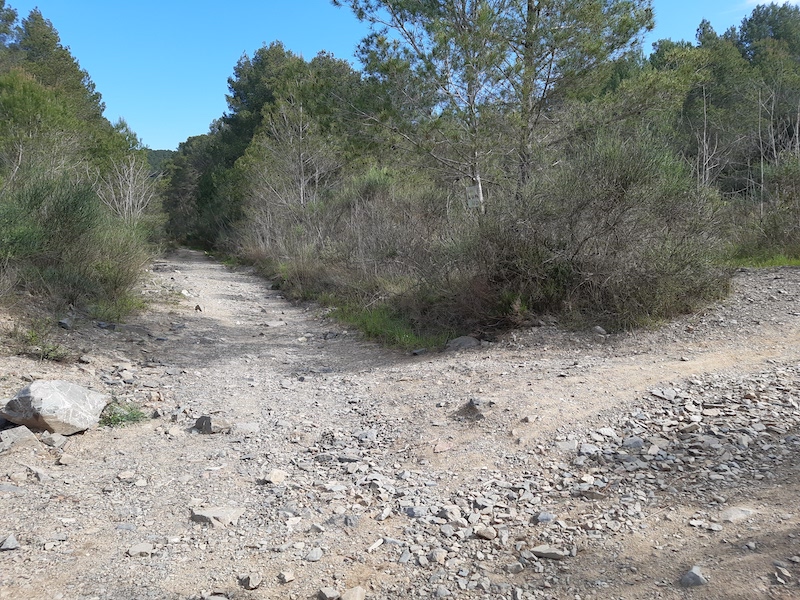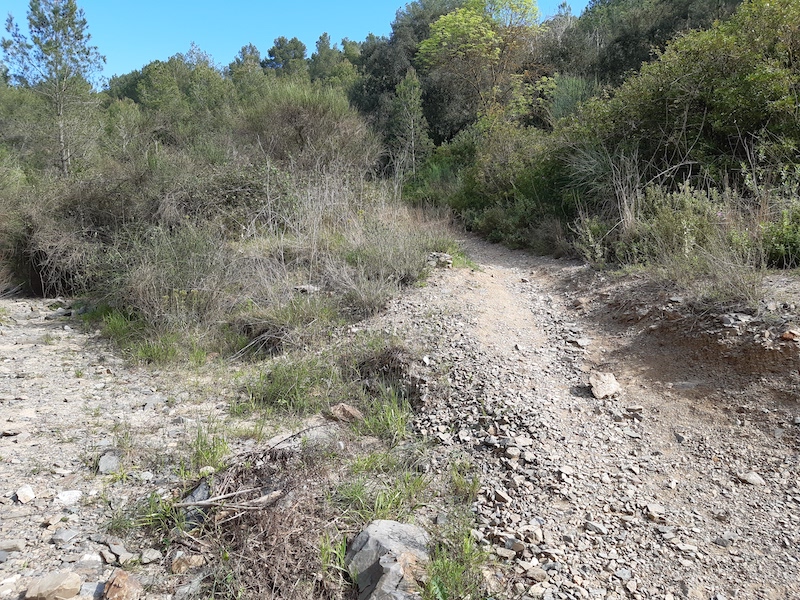 0,9 km: Deixem a la dreta el camí del Castellots que és per on després tornarem.
