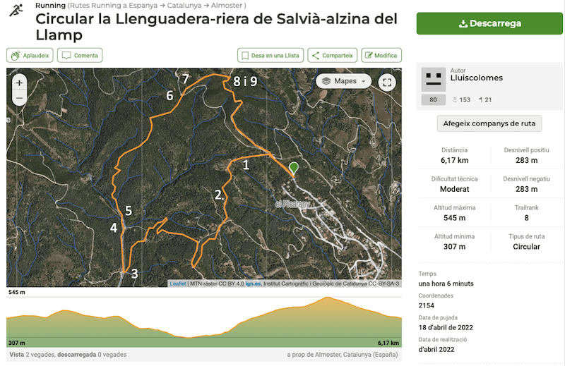 Grau de dificultat SENDIF: 462 Moderada.