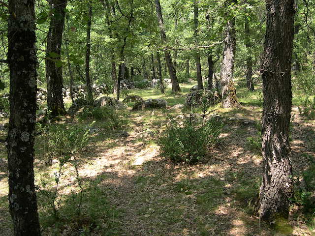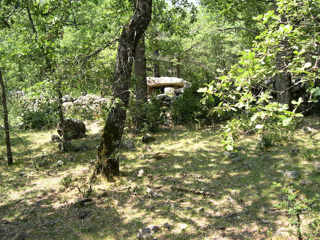 0.64 km: A pocs metres veiem el dolmen de la Cabaneta del Formó (foto 5, 6 i 1). Ara anem en sentit nord pel mig de la Rourera del Transà (foto 7), sense que hi hagi cap corriol ni fita que indica el següent dolmen.