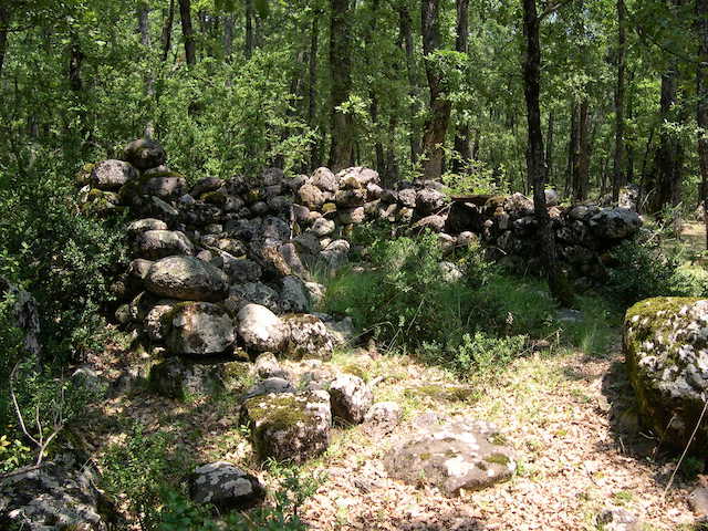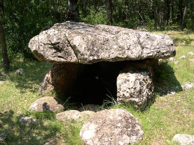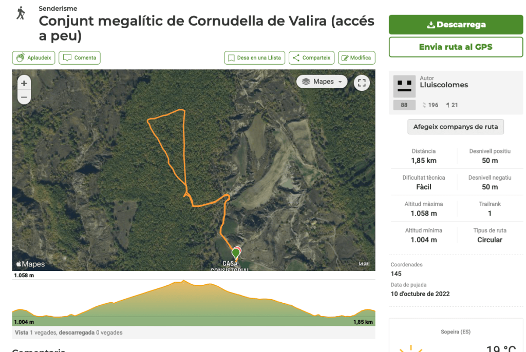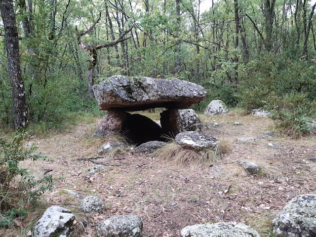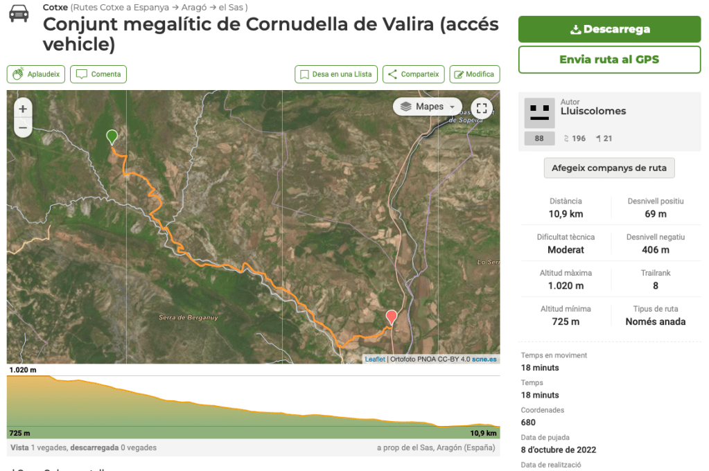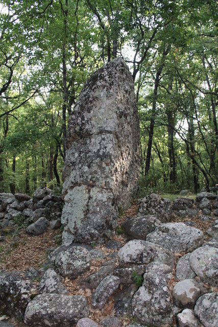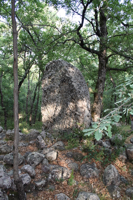 1 km: Menhir (foto 11 i 12). Pel mig de la rourera baixem en sentit sud fins a trobar el dolmen de la Cabaneta del Formó i retrobem el camí de tornada a l’Hostalet.