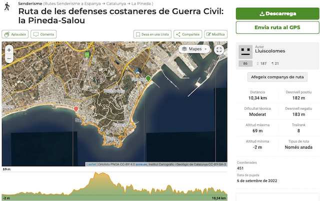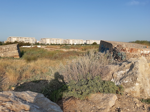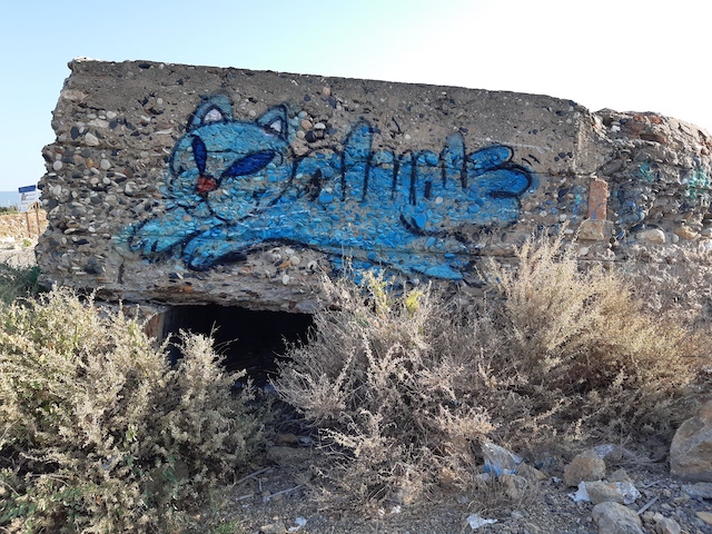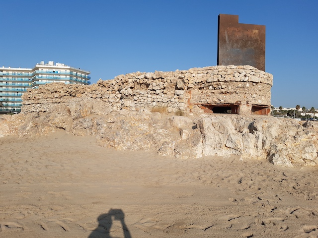 0,03 km: Es troba un conjunt dels dos primers búnquers del tipus B. Reprenem el passeig de la platja de la Pineda en direcció oest.