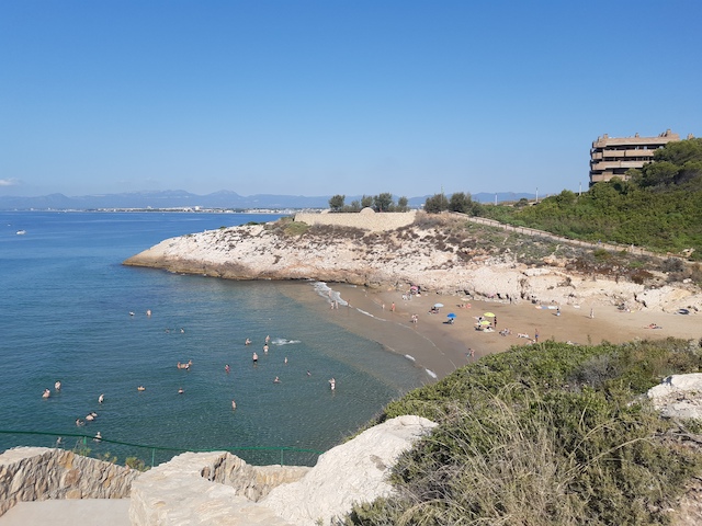 9,7 km: Escales que baixen a la Platja dels Capellans. Travessem tota la platja fins arribar a les Ferreries. Aquí el camí de Ronda és un voladís de fusta amb baranes de protecció. Continuem fins a trobar l’inici de la Platja de Llevant de Salou.
