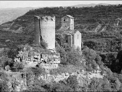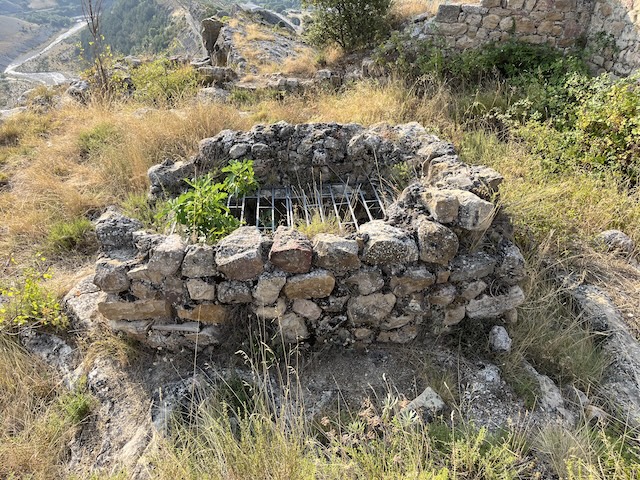 Pel que fa a l’extrem oest, cal dir que era el centre del castell i la part més elevada (foto 14). Està format per una torre rectangular (foto 15), una cisterna i una muralla que anava de nord a sud rodejant la torre i resseguint la forma de la roca (foto 16). La muralla del recinte oest té un perímetre de 70 m.