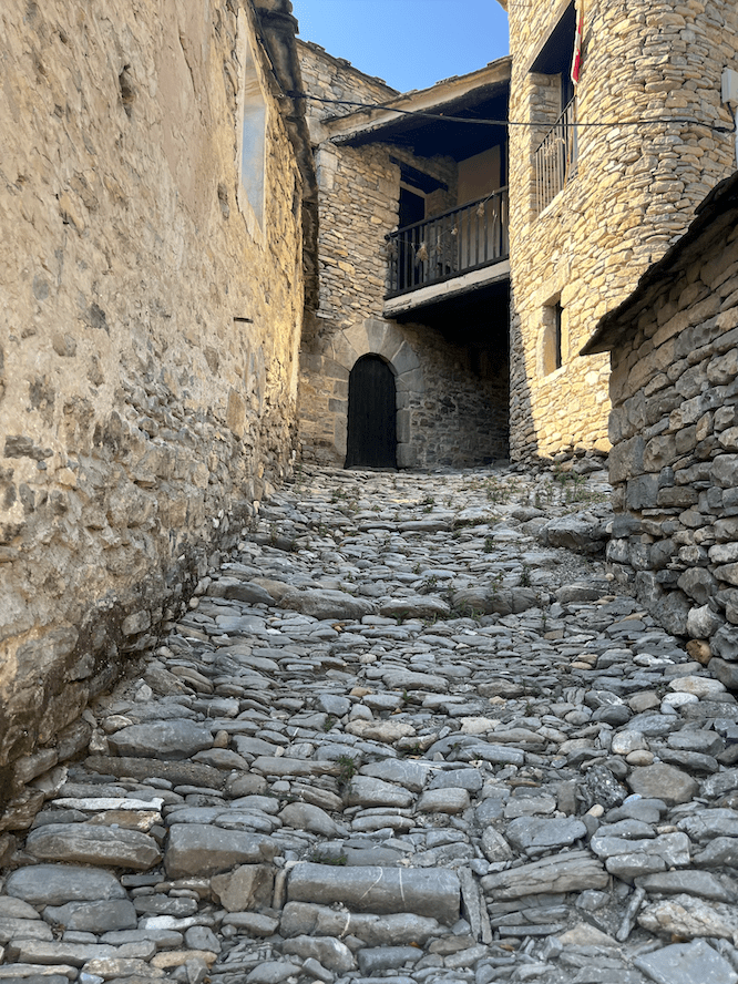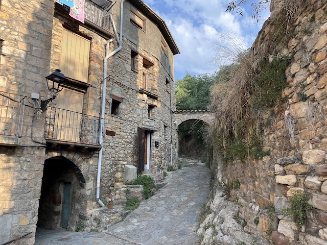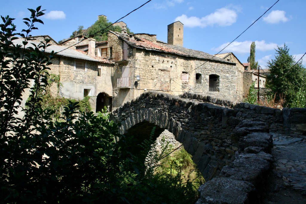 0,0 m: Pàrquing de Montanyana. Agafem l’únic carrer per anar a trobar el pont romànic.