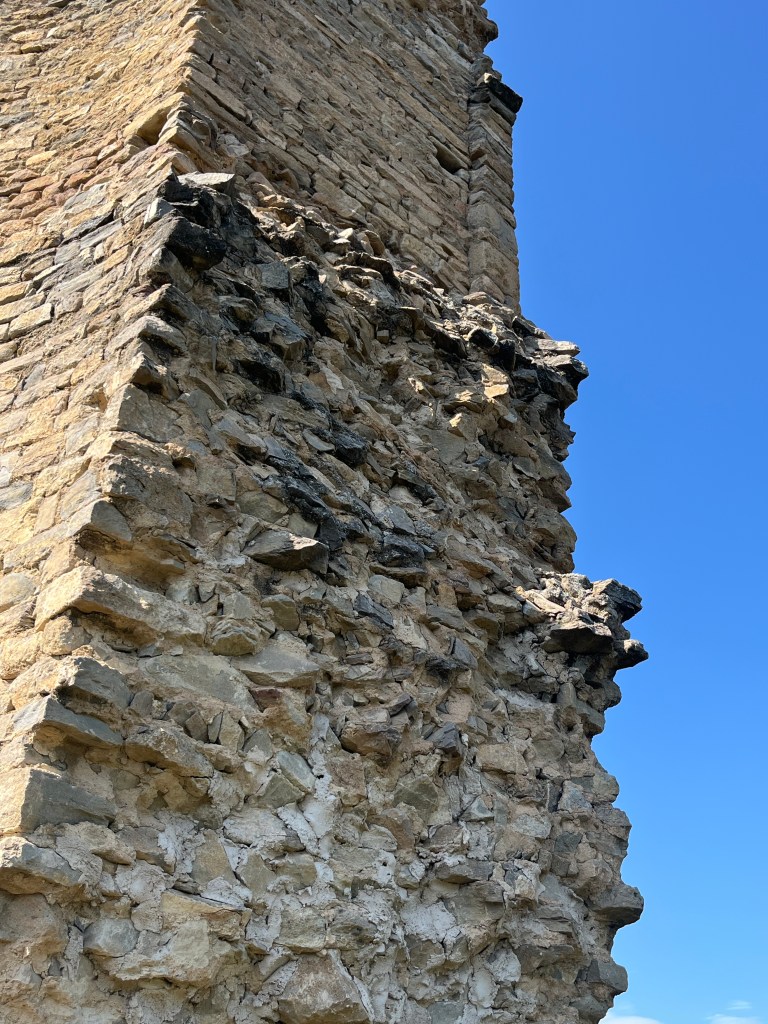 Anys més tard s’hi van afegir altres construccions com són una torre i un altre mur més prim que agafa la direcció sud i va unit al tram final de la muralla antiga i que daten del s. XIII (fotos 2 i 13).