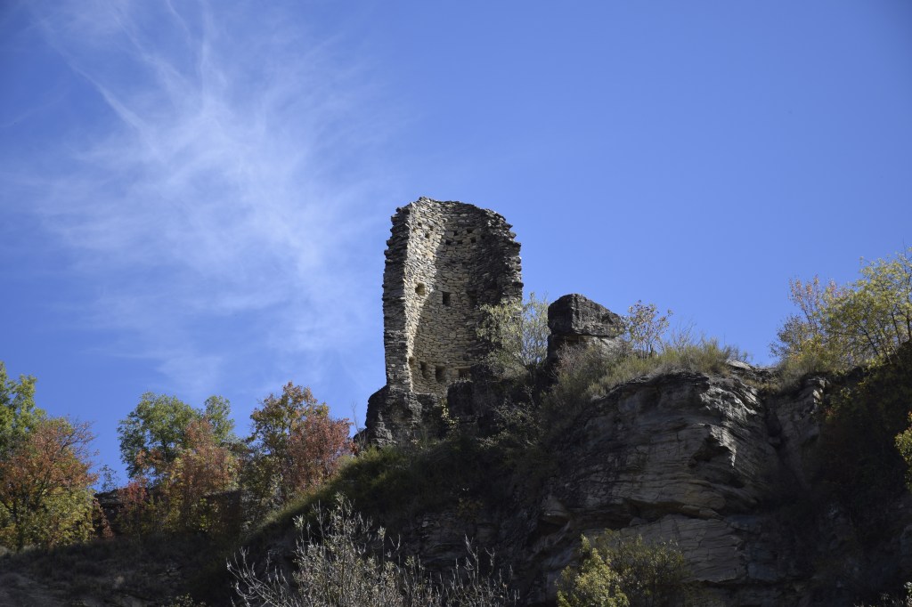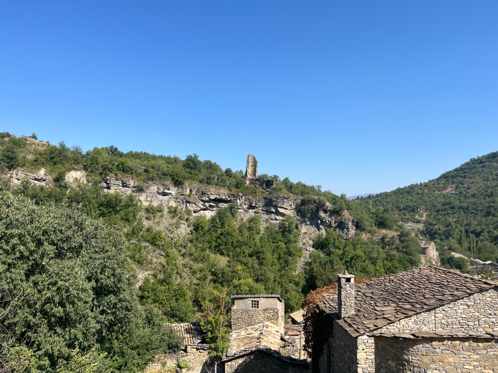 481 m: Després de fer uns 50 metres de desnivell positiu, arribem a la torre del castell de Montanyana.