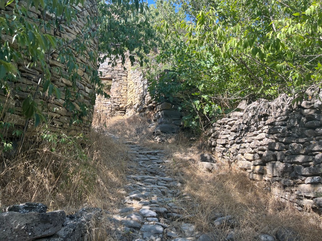 96 m: Travessem el barranc de Sant Joan pel pont romànic (foto 22) i enfilem el carrer que puja al castell (foto 23).