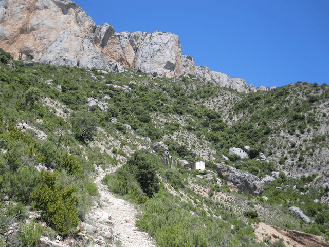 1,3 km: Arribem al barranc de Turmeda. Deixem el camí que va a Esplugafreda i a Tremp que travessa la barrancada i s’endinsa dins del bosc de Turmeda en direcció est.
