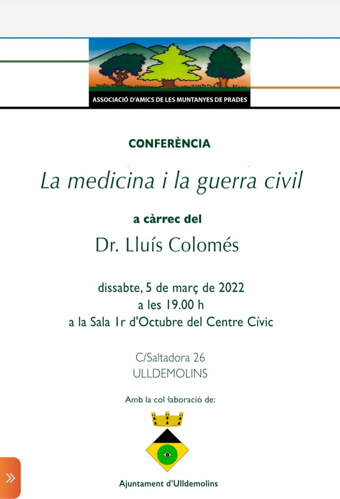 Xerrada dia 5 de març de 2022 a les 19 hores a la sala 1r d’Octubre d’Uldemolins (el Priorat)