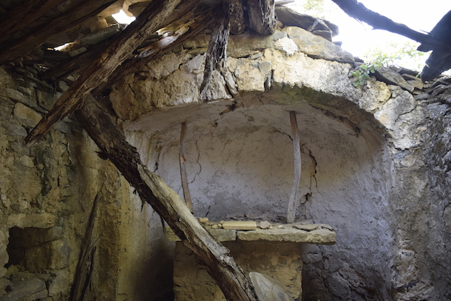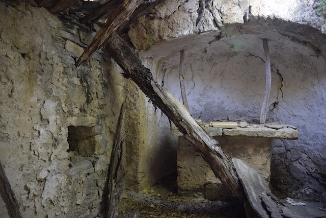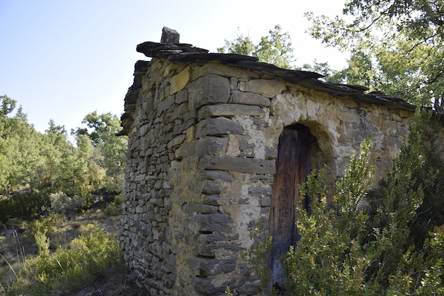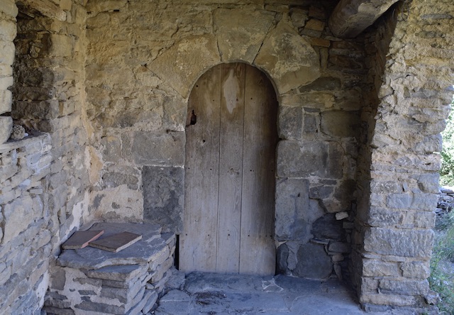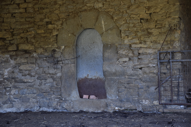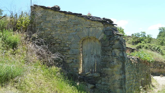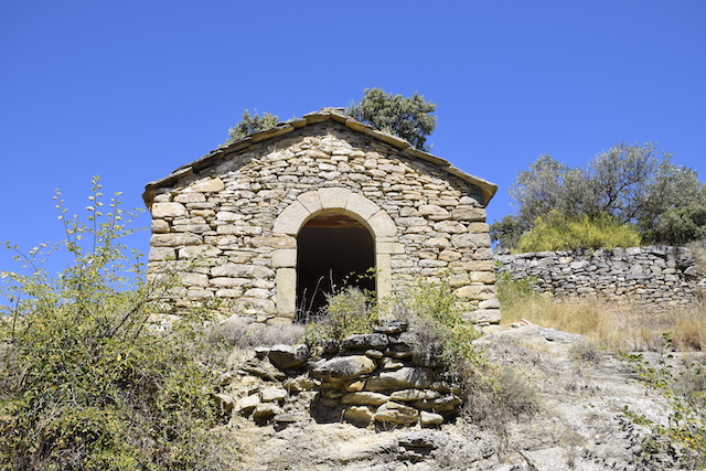 Moltes de les pedres d’aquest temple van ser utilitzades en la construcció de la font que es troba a sota i a la vora del barranc (foto 4) i en els diferents recintes annexes al mas.
