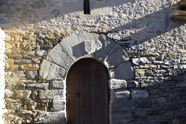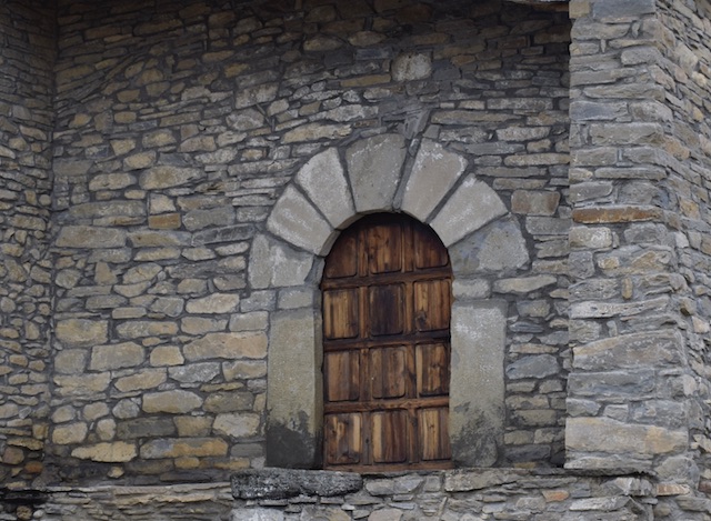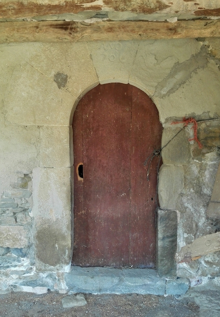A la façana sud s’obre la porta d’entrada amb un arc semicircular on les dovelles han estat espoliades (foto 8). En aquesta paret s’obre una finestra amb un arc de mig punt adovellat i de doble esqueixada (foto 7).