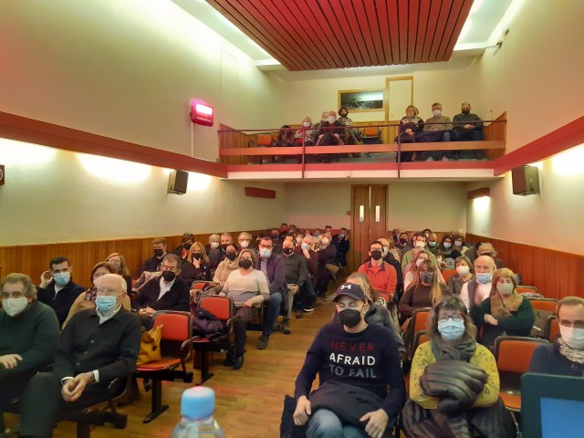 La sala de la Casa Nova de Sapeira estava plena de gent que s’ho va passar molt bé amb les xerrades i les cançons de les Krregades de Romanços.