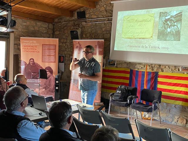 Vaig presentar la xerrada titulada: “Contribució de Sapeira al Cançoner i al folklore català: la figura de Baldiri Bolló”. Va ser tot un plaer compartir les ponències amb Joaquim Mallafré, Montserrat Canela, Raquel Garcia, Montse Nicuesa i amb Jordi Cebolla (veure programa).