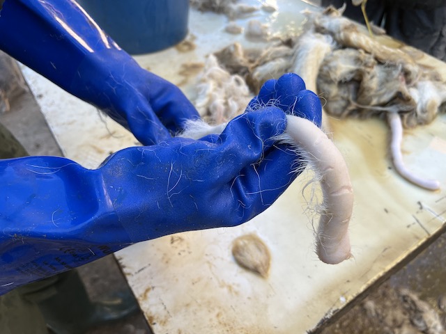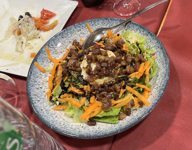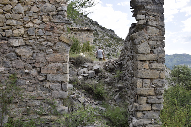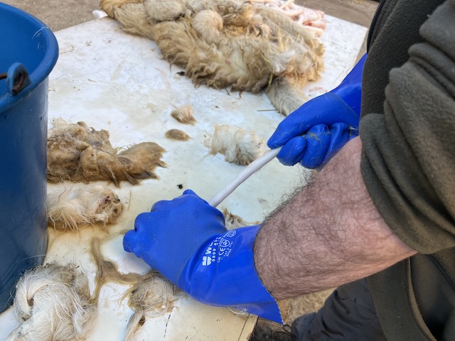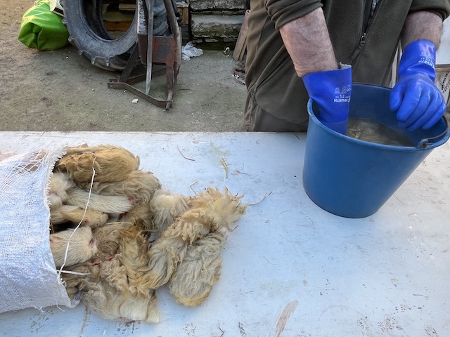 La cuixa/espatlla de corder un cop desossada (foto 1), s’estén i es posen els talls de cansalada, les làmines d’all, la sal i el pebre (foto 2). Tot seguit, es lliga formant un tall rodó (foto 3). Es torna a salpebrar per fora, es posa en una cassola i es rosteix fins que queda ben daurat (foto 4). S’hi afegeix el vi i el conyac, i es continua la cocció al forn o en una cassola tapada. Després s’hi incorpora la ceba, la pastanaga i un ramet d’herbes aromàtiques (fotos 5, 6 i 7). Es deixa coure durant aproximadament una hora. En temporada de bolets, també se n’hi poden afegir cap al final de la cocció. Un cop està fred, es talla a rodanxes (foto 9).