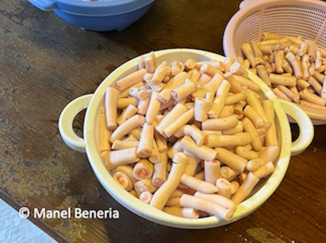 Aquesta era la recepta tradicional de casa Jumperna de Sapeira. Com que els temps canvien, es pot adaptar als gustos actuals. La bresa que acompanya el palpís la podem posar triturada amb crema de llet -o altres condiments- i se serveix com una salsa calenta per acompanyar els talls del palpís.